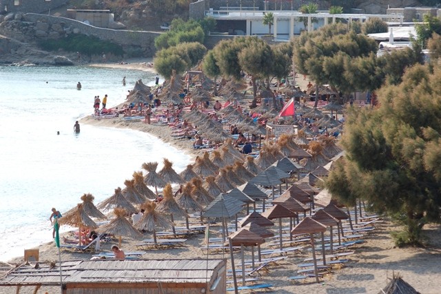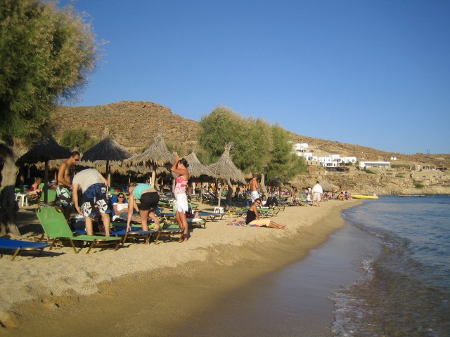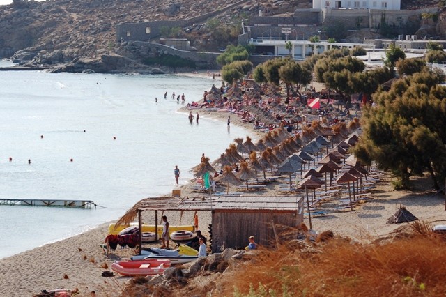 Probably the most popular beach on the island. You can get the by Mykonos busses. perating since 1969, with many facilities available: Paradise Hotels , paradise camping and studios and apartments , two mini markets, newspapers, laundry, a water and electricity supply, natural shade and wattle fences, a restaurant with international dishes open 24 hours a day, a souvenir shop, internet, fax, secretarial services, a playground on the beach and mush more. Paradise beach Mykonos developed its fame and contemporary name through its discovery by the "Hippies" and other world traveling backpackers of the 60"s. Nude sunbathing tolerant, this beautiful large expance of beach caters primarily to the young set offering a well organised the largest camp-site in Mykonos. The same business also rents rooms and runs the famous Paradise Beach Bar, where fun is always at its best, whereas parties and lots of events are held at that pool club cafeteria, snack bars, beach bars, mini shops and discos. Together with water sports and a professional diving center Paradise also has the most established camping facilities on the island. Transportation to and from the beach is possible through direct frequent bus service from town or boat service from Plati Gialos.