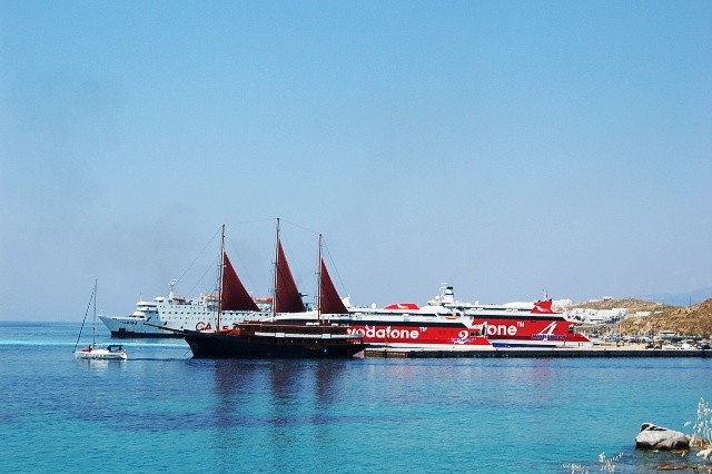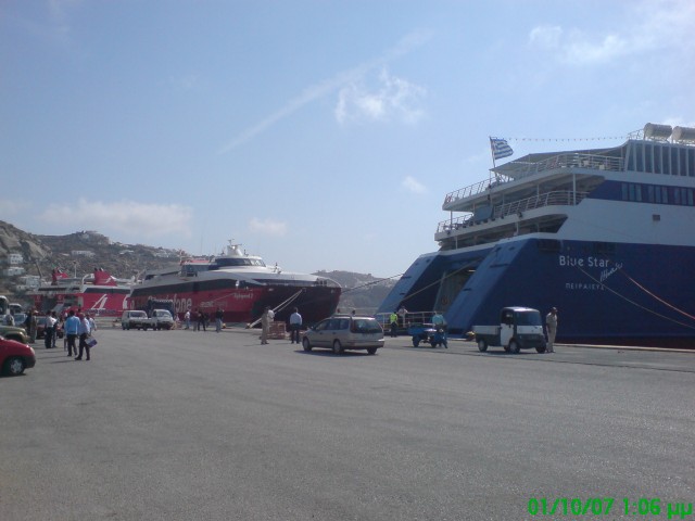 This is the NEW PORT of Mykonos. When somebody arrives at Mykonos Island there is good change that the boat and especially high speed 2 , high speed 3 ,high speed 4 ,high speed 5, arrives at the new port of Mykonos at