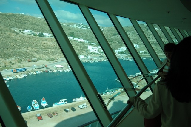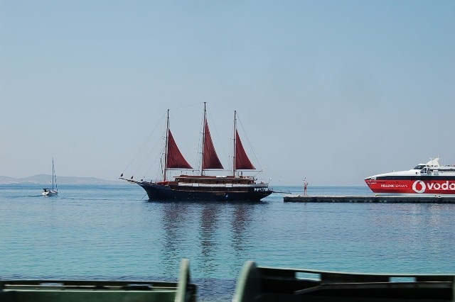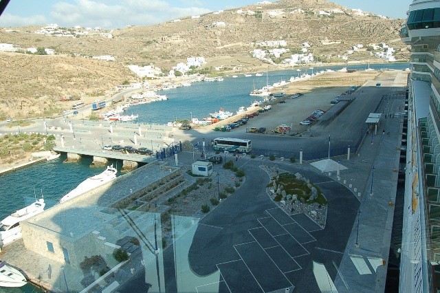 bus that will take you to the old port of Mykonos at Mykonos Town . If you have reserved a hotel or a room you may ask for transfer the hotelier . Almost every hotel in Mykonos have a small or big bus for these needs. In a walking distance you will find the Mathew tavern a mini cafe for a coffee until you depart from Mykonos .